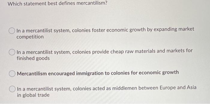 Solved Which Statement Best Defines Mercantilism In A Chegg Com